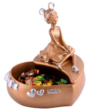 LADY with Basket golden Showpiece for Home Decor Showpiece | Girl Basket Showpiece & Office Decor Showpiece
