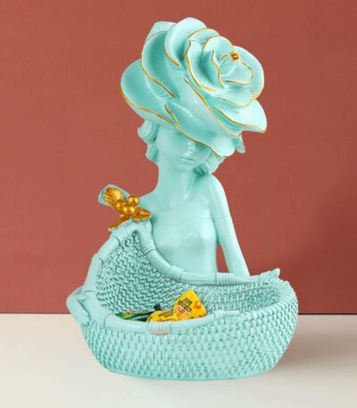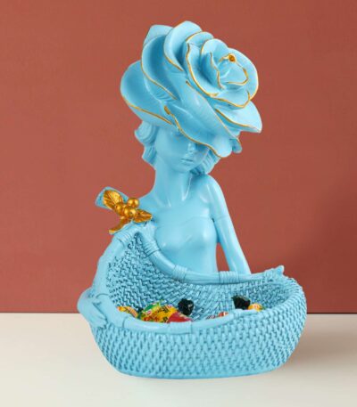 LADY with Basket Showpiece for Home Decor Showpiece | Girl Basket blue Showpiece & Office Decor Showpiece