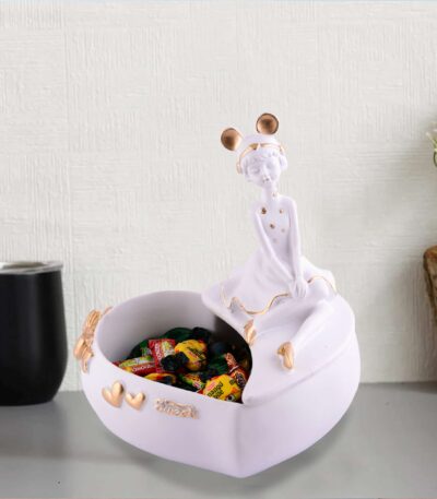 LADY with Basket Showpiece for Home Decor whiteShowpiece | Girl Basket Showpiece & Office Decor Showpiece