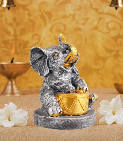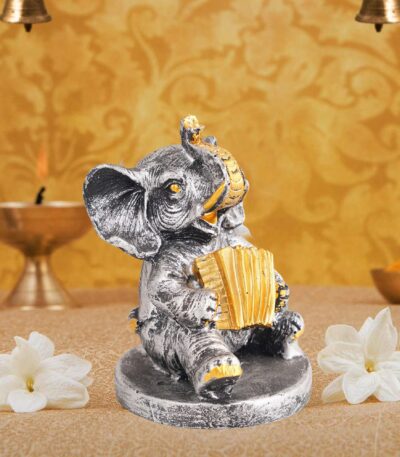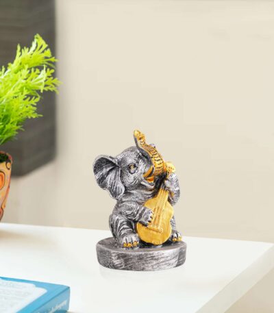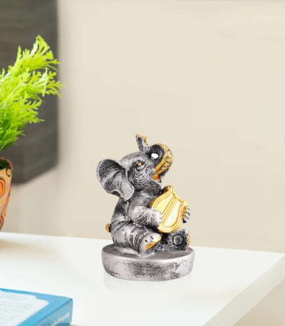 Resin Elephant Playing Musical Instrument Showpiece For Home Dcor Living Room Bedroom Table Top