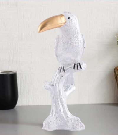 Decorative White Resin Parrot Showpiece for Home Decor, Living Room, Table Decoration for Gifting