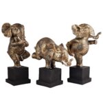 Polyresin Elephant Showpiece Statue and Artifacts for Home Decor, Living Room, Table Decoration for Gifting, Interiors and Diwali Decoration Golden (Set Of 3)